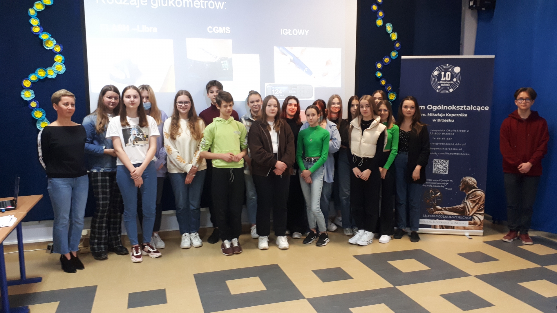 Podczas wykładu zwrócono uwagę na przyczyny, skutki oraz profilaktykę tych chorób. Młodzież została zapoznana ze sposobami diagnostyki oraz metodami pomiarowymi wartości poziomu glukozy we krwi oraz ciśnienia krwi.