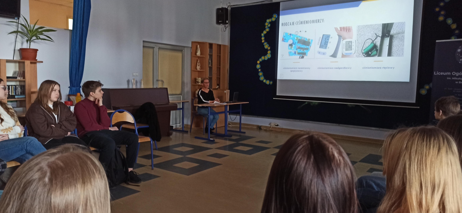 Uczniowie najpierw wysłuchali prelekcji na temat nadciśnienia tętniczego oraz cukrzycy – dwóch coraz częstych schorzeń występujących w populacji ludzkiej XXI wieku.